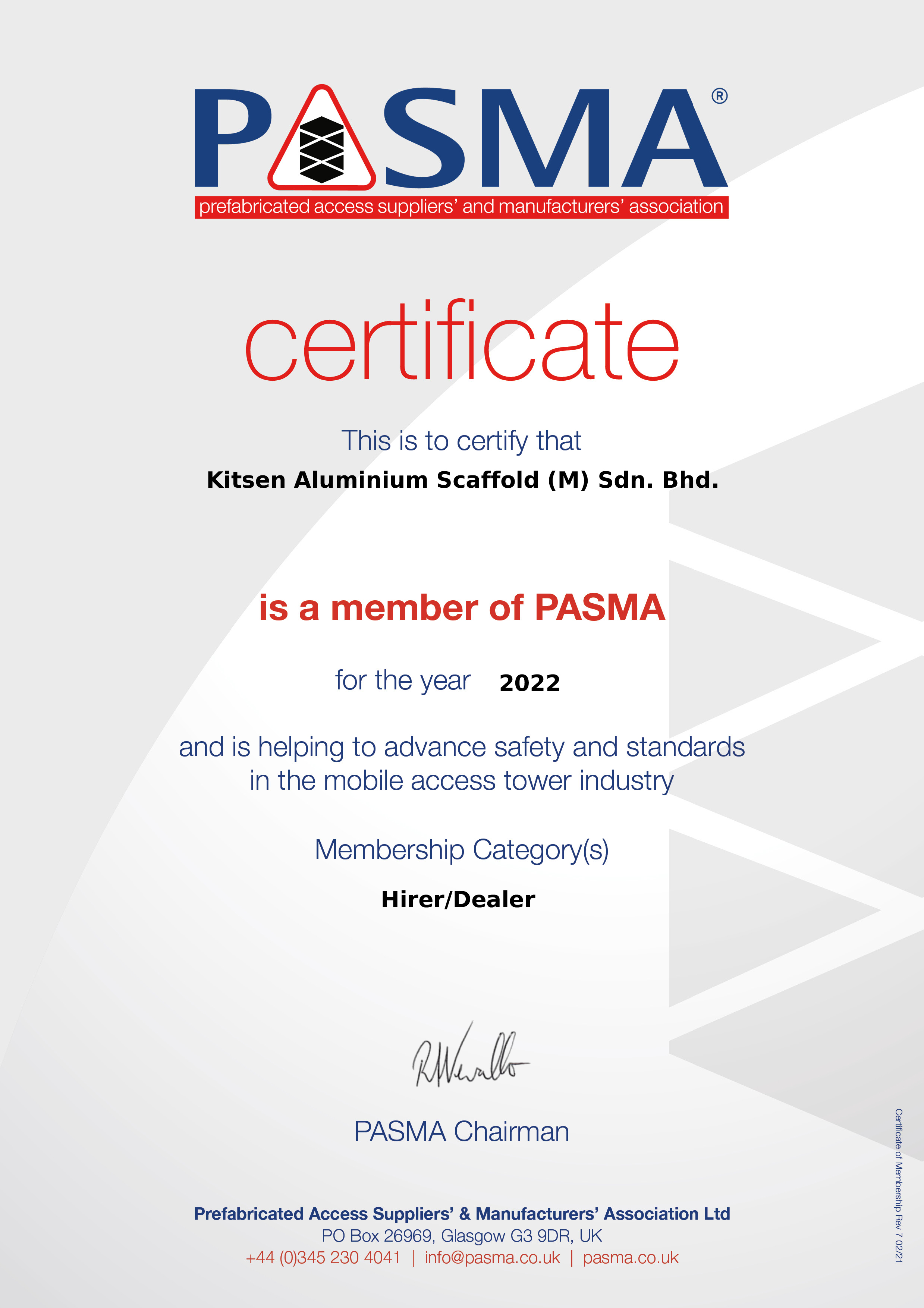KITSEN ALUMINIUM SCAFFOLD (M) SDN BHD was established on 13 August 2010. KITSEN is actively committed to market Aluminium Frame Scaffold System, Aluminium Ringlock Scaffold System and supply widest range of self-propelled Aerial Work Platforms (Personnel Lift, Scissor Lift and Boom Lift), with innovative, high quality and reliable products that meet customer requirements. Our products comply with applicable regulatory requirements and International Standards. We operate and maintain a total quality management system. The system covers the design, sales, service and hire operations. From its humble beginning the company has achieved to become a major supplier of scaffolding and accessories to the construction industry in a short period of time.